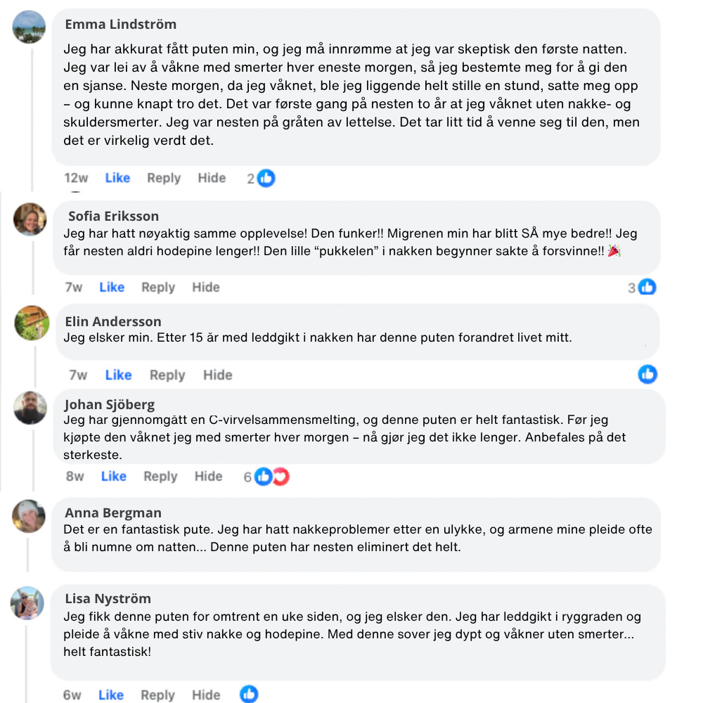Ekte brukere forteller om bedre holdning, dypere søvn og smertefrie morgener. DreamSleepz-puten gir ikke bare mer avslappende netter – den løfter hele velværet ditt.