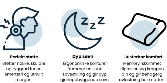 Omfavner nakke, skuldre og ryggrad på en skånsom måte – for smertefrie og mer uthvilte morgener.